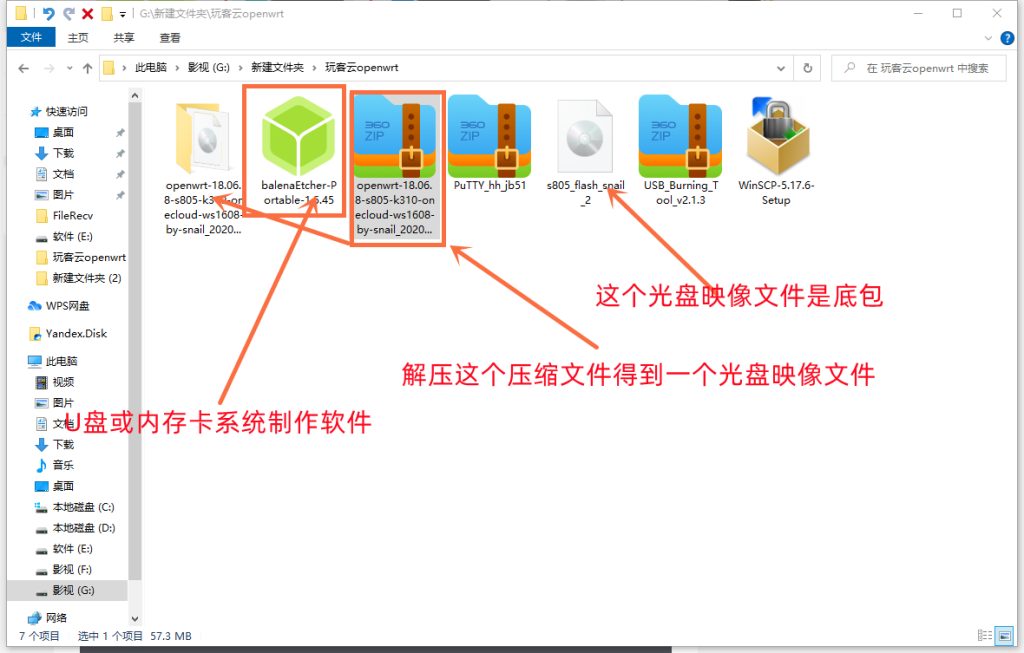 1.解压“openwrt-18.06.8-s805-k310-onecloud-ws1608-by-snail_20201208_163930 (7).img.xz”这个压缩包,得到一个光盘映像的文件。