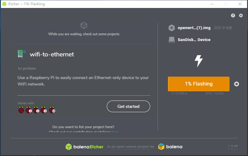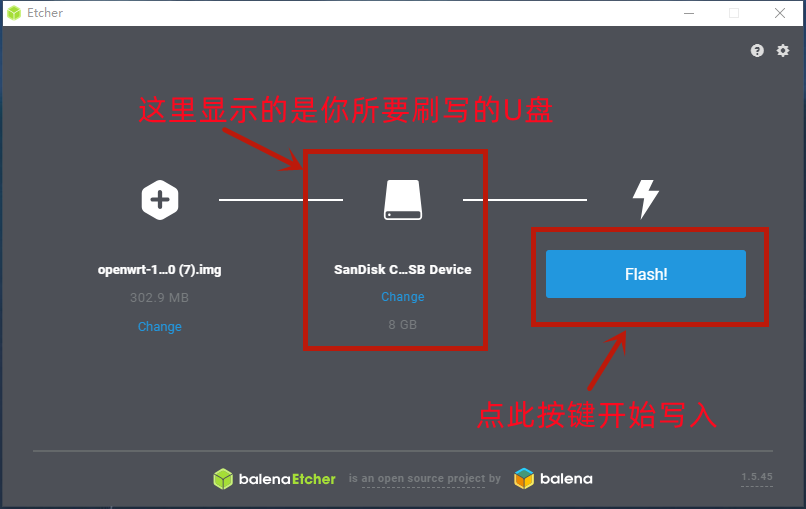现在我就以balenaEtcher-Portable-1.5.45.exe制作软件为例,把openwrt写入U盘。