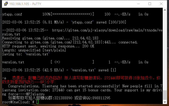 第五步,接下来就是挂载U盘,部署甜糖,修改和固定MAC地址,设置守护脚本了。我刷机的时候看过很多大佬写的脚本,太复杂,对于小白的我来说就像是看天书,直到看到“什么值得买”论坛里,“PJ小宇”写的一行代码全都解决了,他还出了新的玩客云刷甜糖的方法,小伙伴们可以去搜索看看,可我还是觉得老办法方便,代码如下: