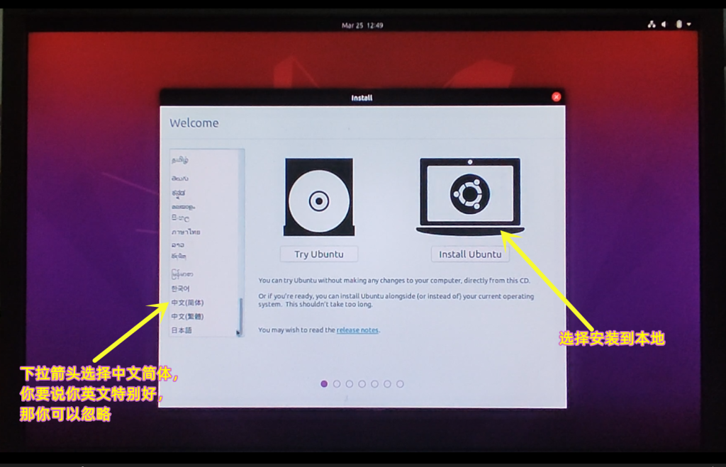 加载完毕,就会进入安装界面了,选择中文,硬盘安装,然后点继续