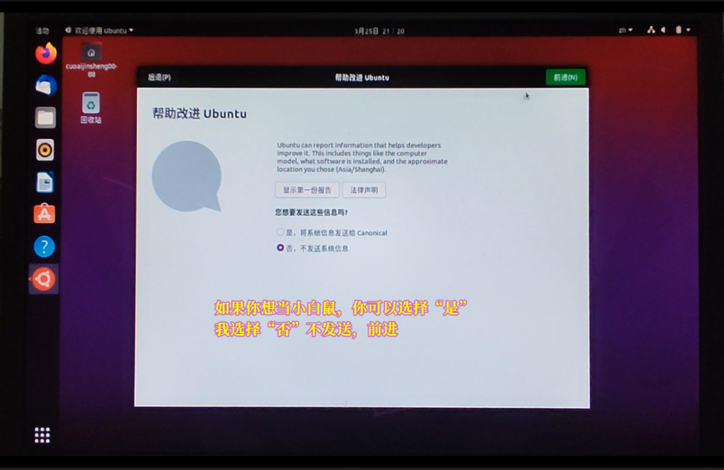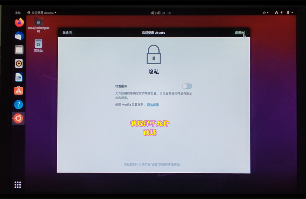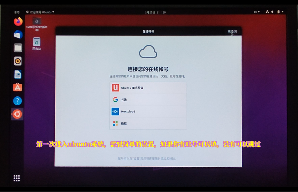 第一次进入ubuntu系统需要简单的设置一下,有账号可以填,没账号跳过