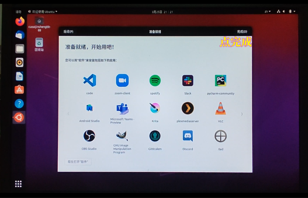 点击完成,此时我们就把ubuntu系统安装到电脑硬盘里了。