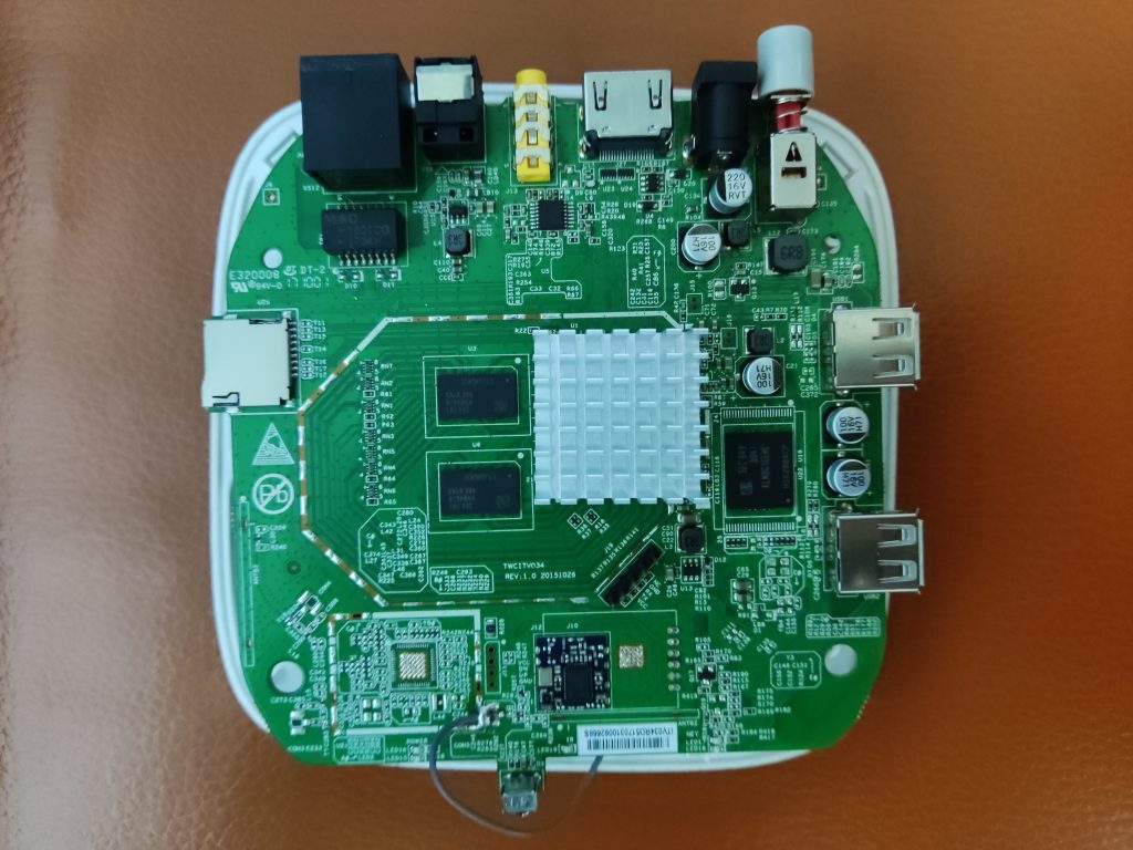 本次测试机型:烽火H680J上海电信高安版,CPU芯片为华为海思hi3798MV100CA,高安版。(因为散热粘的紧,芯片信息是TTL跑码获得)