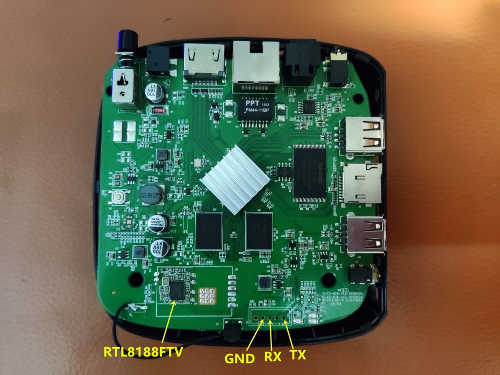 收到盒子的当天就开始研究,全网找资料,因为CPU的散热芯片实在粘的太紧,也没敢使劲往下扣,只能TTL跑码,这盒子的TTL点位也是奇葩,有6个孔位,GND-TX-RX三个点位还不是连在一起的,可通过TTL跑码信息我只看出DDR是1G的,存储芯片是NAND的,厂家是易视腾的,最关键的CPU没看出来,看到板子上有2015,固件是2015年的很有些年头了,网上的资料也很多,才知道这款盒子版本也是众多电信,移动,联通都有这款型号,这款IS-E5还有LW-GW-NLW-NGW还几个版本。看到网上基本都说此盒子是全志H3的芯片,我也默认我手里的盒子也是全志H3芯片了,于是在网上找到3款全志H3标记这款盒子型号的线刷固件开刷。