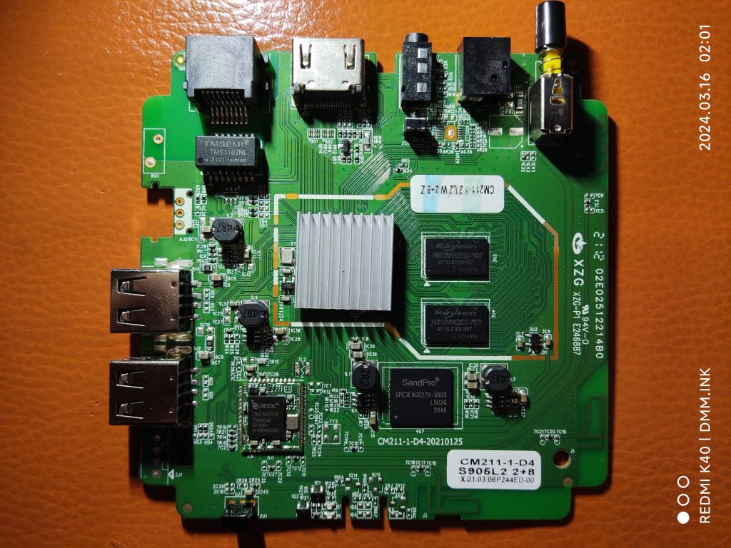 散热贴片粘的太紧了,就没扣下来。板子上的贴纸标记为S905L2,通过TTL做了分区的完整备份。