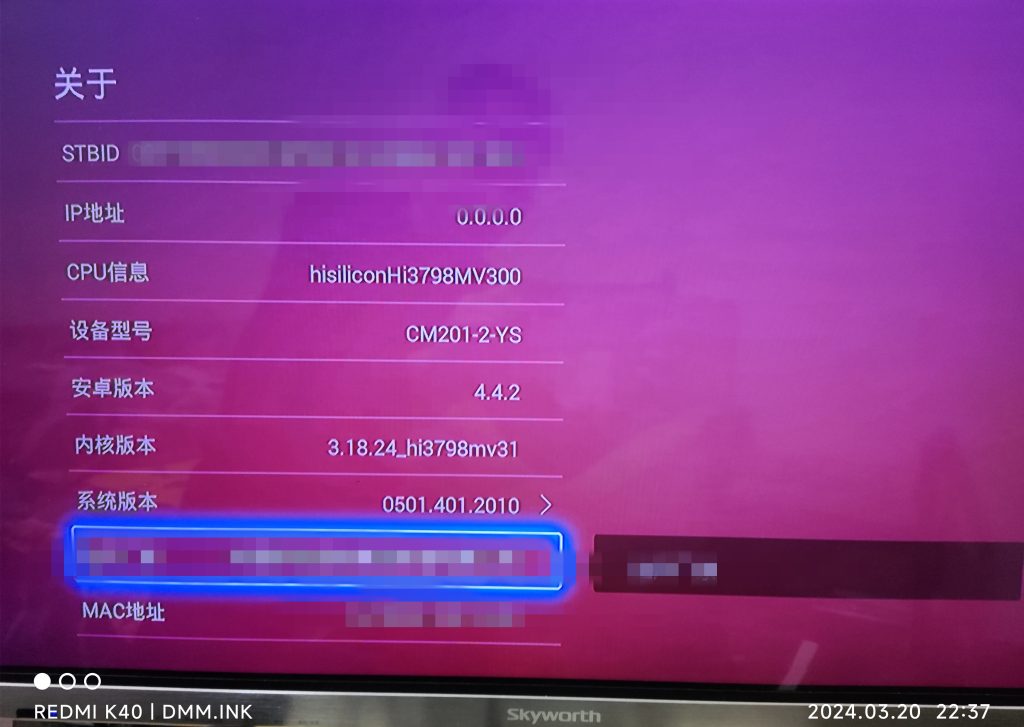 另外多说一句,这个盒子和上一篇文章的盒子,只有芯片HI3798MV300后面多了一个H,只差这一个H,刷错就成砖。还要注意的是设置关于本机里的CPU信息并不一定真实,请一定跑码查看CPU芯片的具体型号,或者一定要把散热铁片拆下来看到具体的CPU型号。