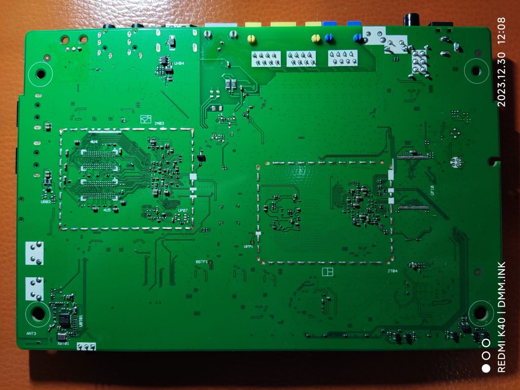 机顶盒一侧:具体配置:晶晨S905L3CPU芯片,因为是融合机用不到wifi,所以这个盒子没有wifi接收芯片,有蓝牙芯片8761BTV,2G的运存,8G的EMMC存储芯片。