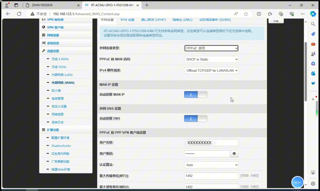 4,路由器拨号,这里我用刷过老毛子固件的斐讯K2做演示: