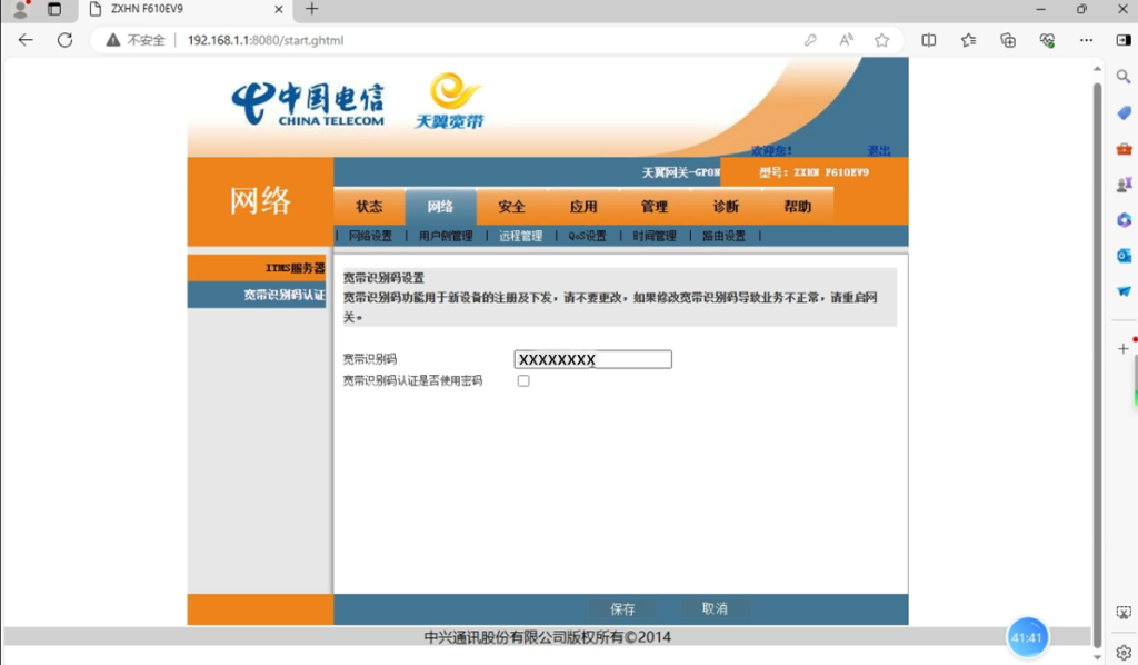 下面进入正题:换光猫之前我们要记录好原宽带的信息,我们主要记录的信息主要有三个,第一个就是宽带的账号和密码(可以打运营商的客服电话要),第二个VLAN ID,第三个LOID,这里需要注意一下,在电信的宽带里第三个不叫LOID,电信的宽带里叫“宽带识别码”建议登录光猫后台把所有页面截图保存。