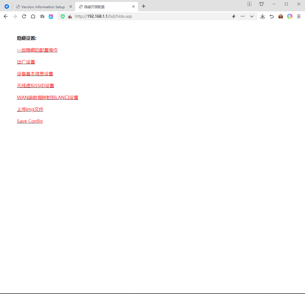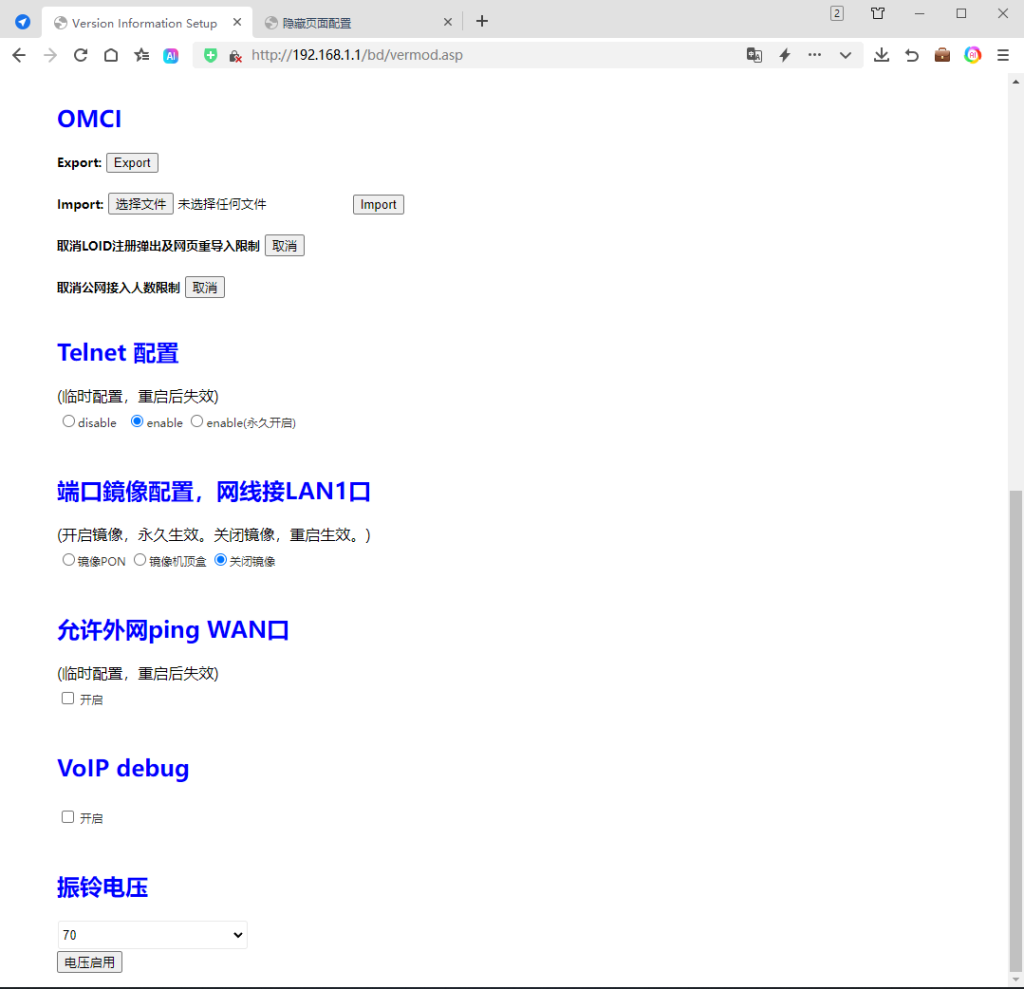 浏览器登录光猫后台以后,新开浏览器输入以下网址会开启隐藏功能: