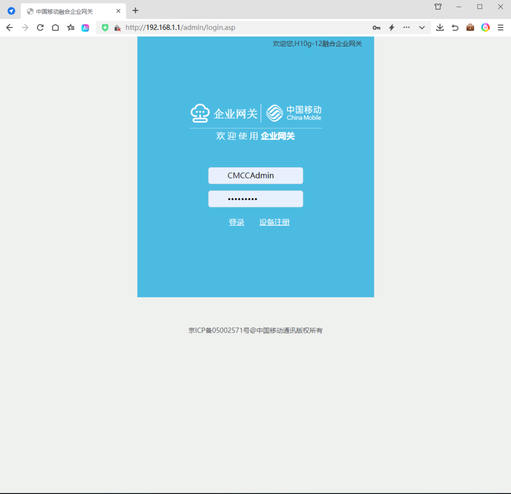 管理员账号:CMCCAdmin密码:aDm8H%MdA