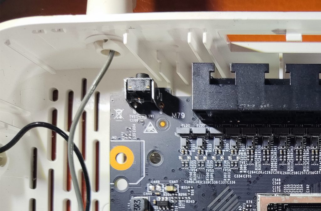 关于非B版,就是CPU芯片为高通IPQ5000的,还要区分板子型号,目前发现有两种,一种为M79,另一种为M81,可以通过壳子背面的孔洞查看(见下面图片)