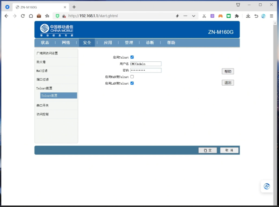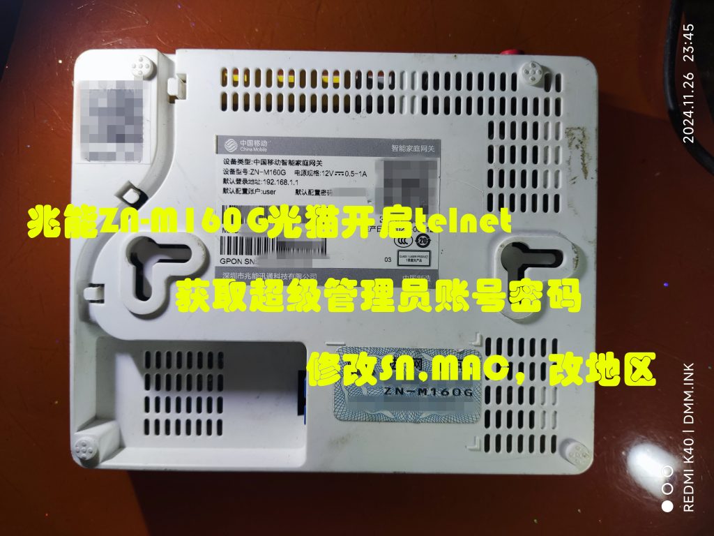 河南群友发来两款光猫让我研究,其中一款型号为:兆能ZN-M160G光猫,4网口都是全千兆的。兆能代工的光猫我是都一次碰到,这款光猫开启telnet还是比较简单的,只要有超级管理员的账号密码,登陆光猫的管理后台,就可以直接勾选开启光猫的telnet,telnet的账号和密码也是可以自行设置的。另外要说一下,这款兆能代工ZN-M160G光猫也是中兴微的CPU芯片,修改SN,MAC,改地区的方法和采用中兴微CPU芯片的其他品牌型号的光猫完全一样,命令是完全一样的。