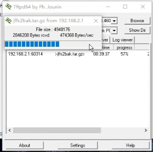 第三项:telnet下,利用tftpd64.460工具备份jffs2整个分区文件(很重要)