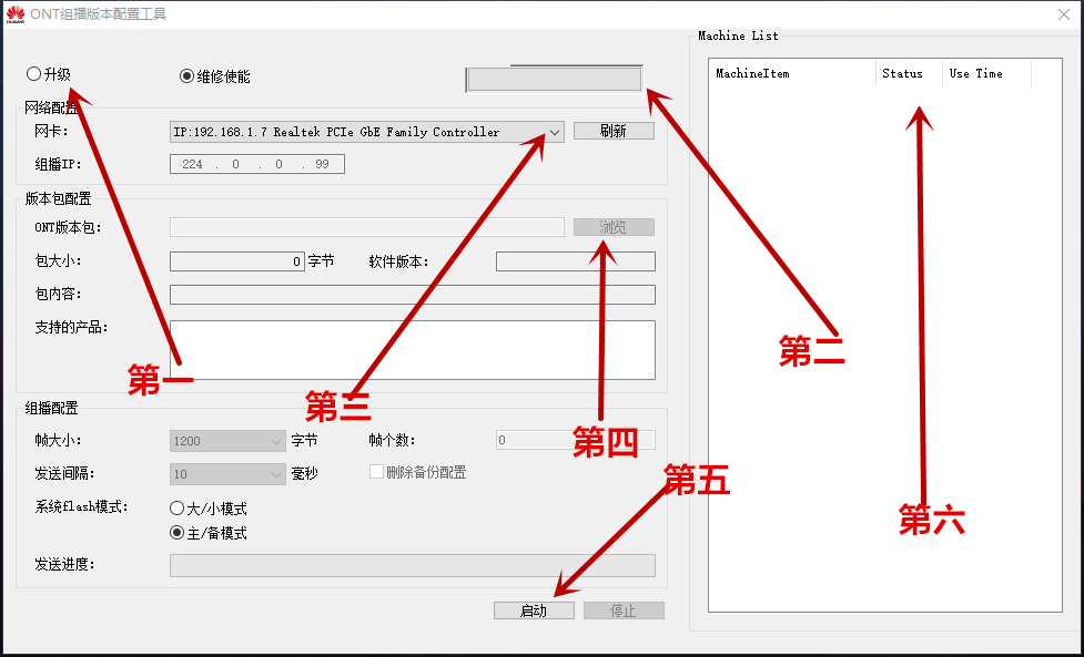 1.勾选升级 2.点开设备列表 3. 选择电脑网卡 4.选择补全文件 5.启动使能工具 6.查看设备列表里是否有成功提示(见图)