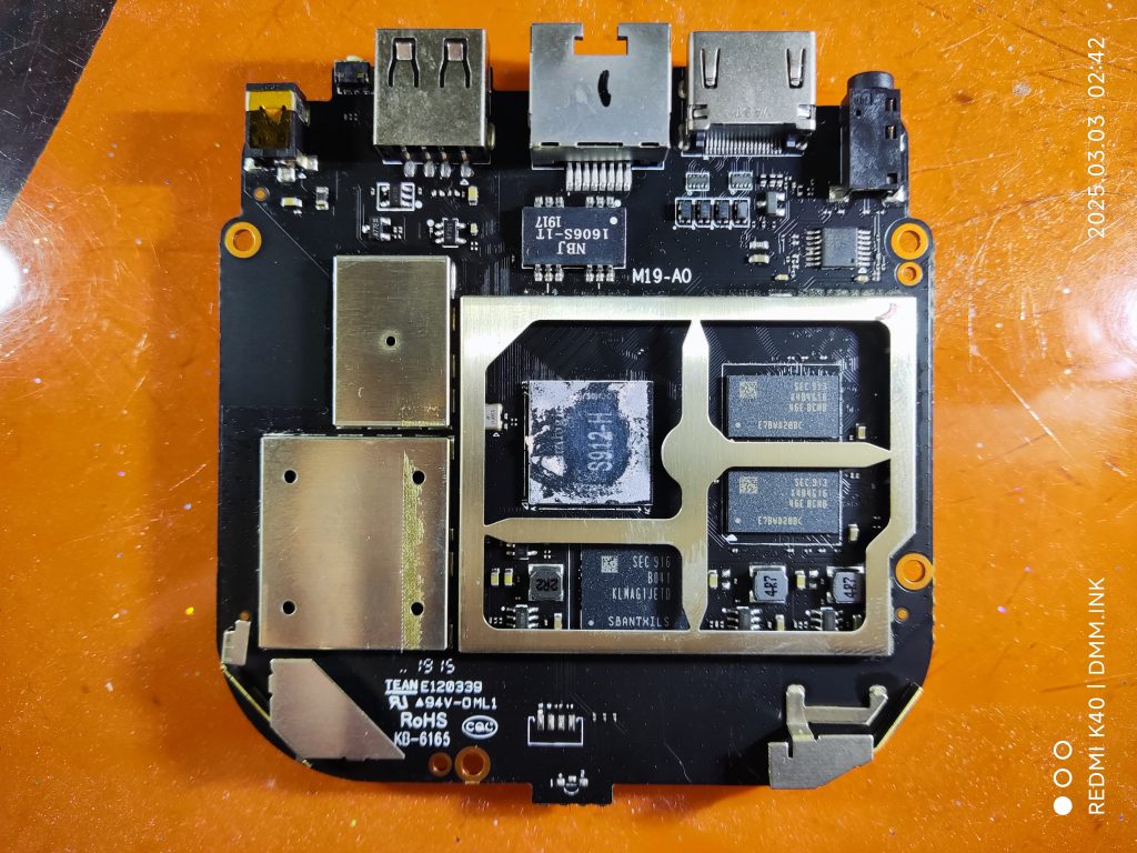 说一下今天这款:天猫魔盒4PRO,M19,CPU型号为S912-H,2G的运行内存,16G的EMMC存储,由于有的散热铁片是焊接在板子上面的,不好打开,所以wifi芯片和蓝牙芯片的具体型号不详,固件是原系统精简的,就不存在wifi无法识别的情况。