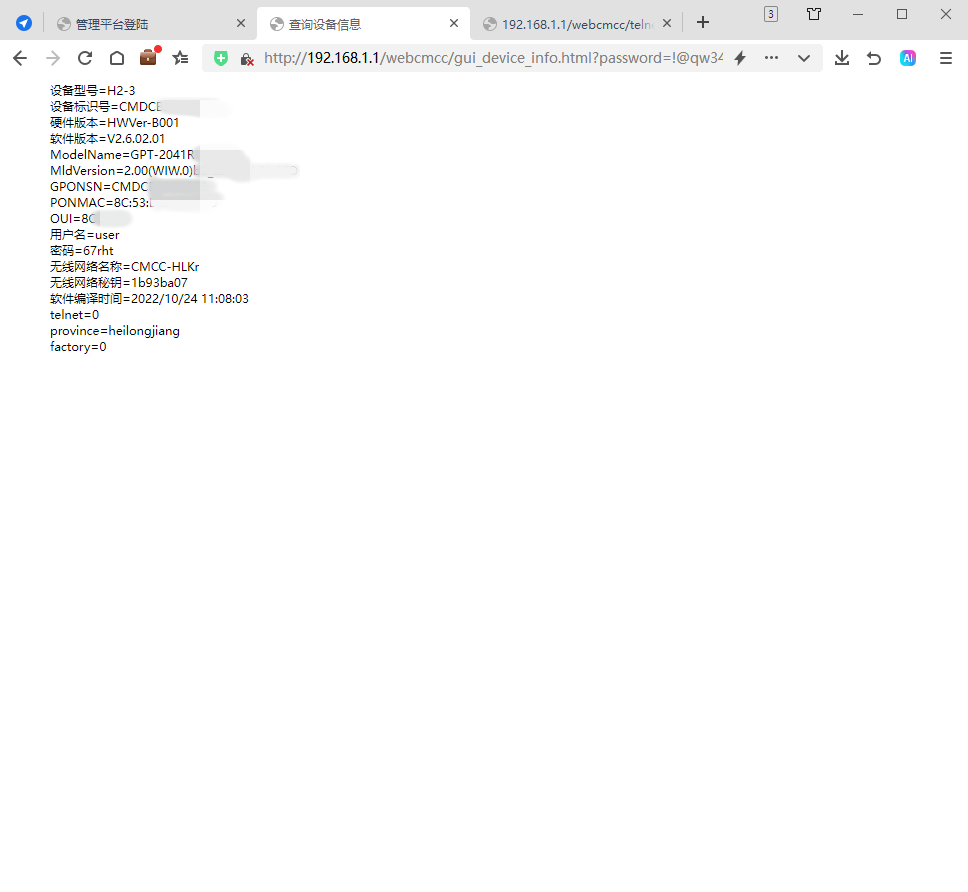http://192.168.1.1/webcmcc/rc_telnet_debug.html?password=!@qw34er&username=root