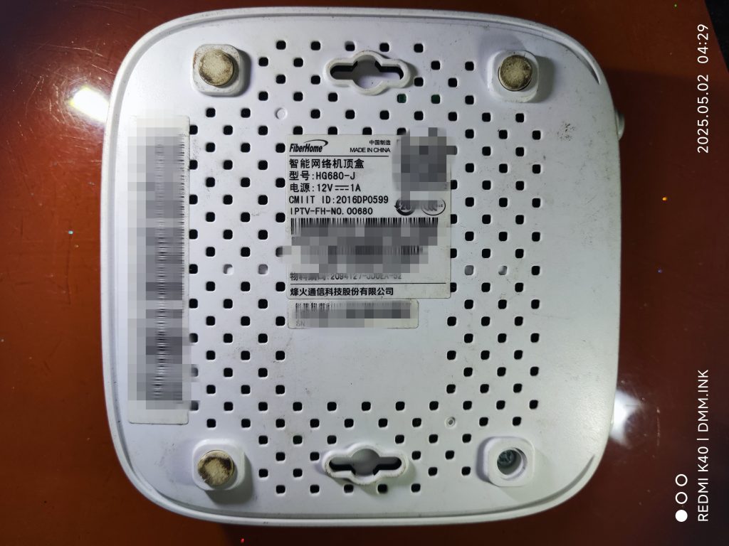 黑龙江的小伙伴发来几款黑龙江电信版的盒子,让我研究刷一下机,今天刷另一个版本的烽火HG680-J,盒子还是原系统,通过盒子串口备份了全分区完整文件。