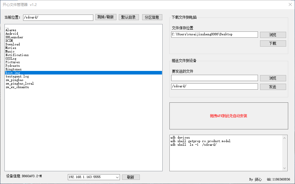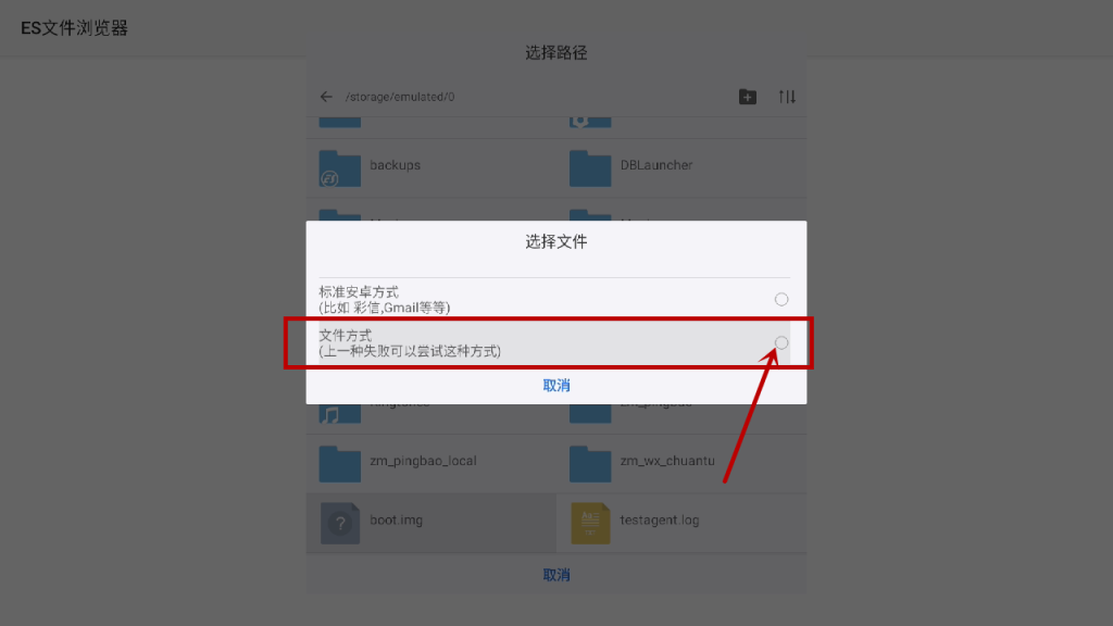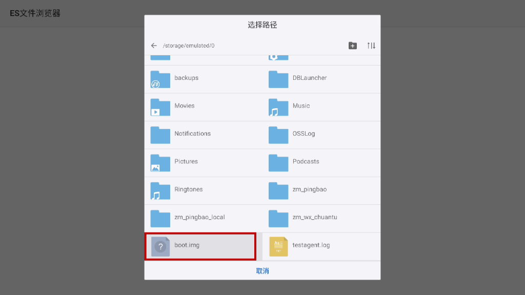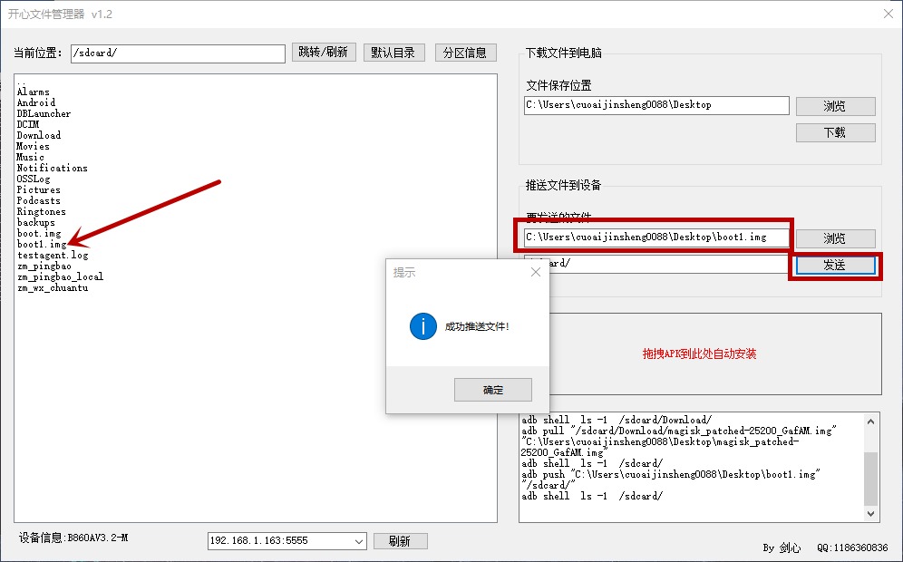 然后我们通过开心文件管理,将boot1.img文件上传至/sdcard/中