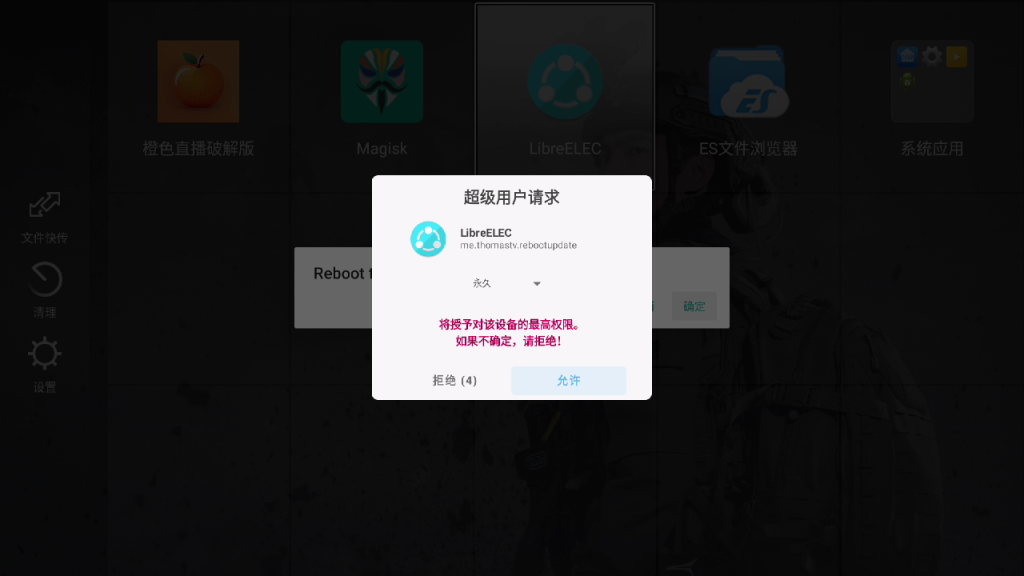 第二步:给盒子安装Reboot to LibreELEC.apk(卡载系统启动)