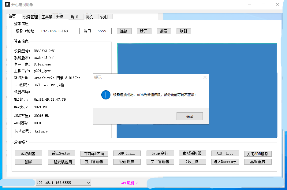 通过面具apk软件修改boot的方式root盒子,我操作过两次,一次成功,好像是小米的一款盒子,一次失败,是腾讯极光盒子3Pro。时间有点久我也记不清了。但都没做记录,今天我就刷入一个没有完全root的安卓固件,用面具修改boot的方式root盒子,做一下记录。