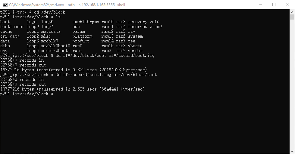 dd if=/sdcard/boot1.img of=/dev/block/boot