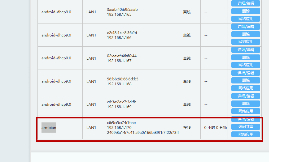第九步:我们回到电脑,等待2分钟左右就可以到路由器后台查看armbian系统IP地址了