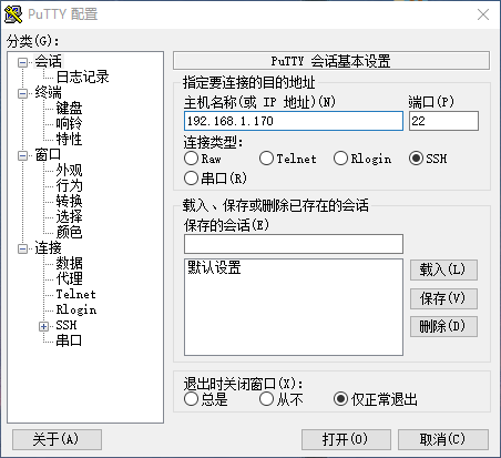 第十步:我们用SSH工具,这里我用的putty。输入ip地址然后打开