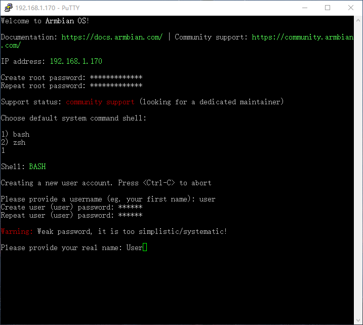 创建普通用户user,并输入两遍普通用户user的密码(也可以ctrl-c跳过)