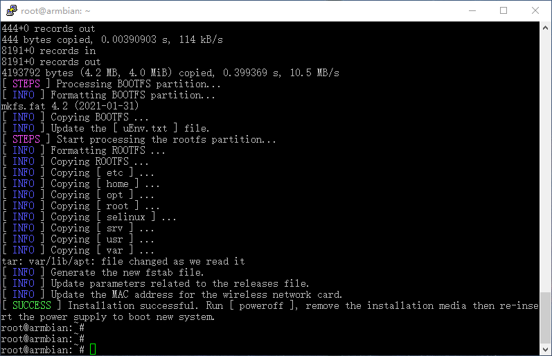 第十一步:将U盘的armbian系统写入到盒子emmc