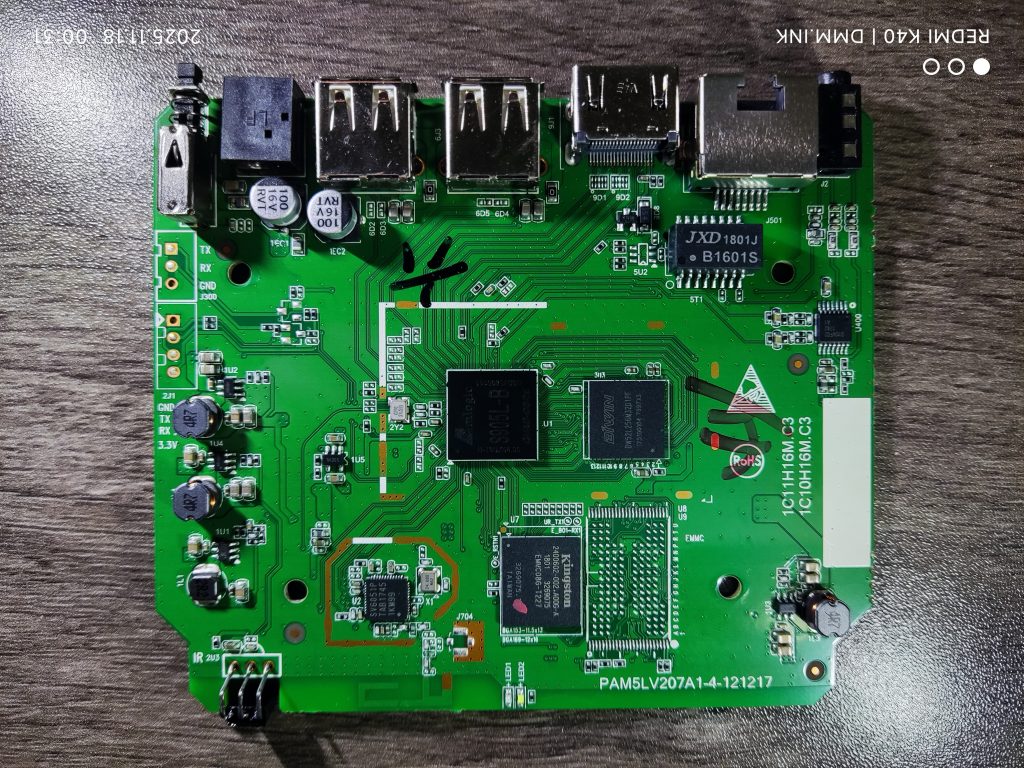 因为晶晨芯片的线刷过程已经说过很多遍了,所以晶晨线刷就不做介绍了,此盒子不用送电,直接就可以连接。如果连接不上,固件包有短接点,请短接之后再连接USB。