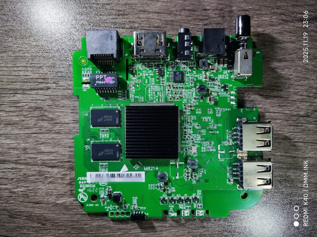 说一下今天这款盒子的具体配置:海思HI3798MV100的CPU芯片,wifi芯片为8188FTV,1G运存,8G的EMMC存储。版号M8214。