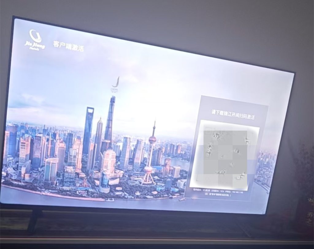 小伙伴得到的电视机,是一个酒店版的桌面,需要扫码登录,就是登录了也是无法进入电视机功能的。(见下图)于是小伙伴在某平台花了几十块买了固件,一共给了两个固件,一个是扩展名为.img的线刷固件,一个是扩展名为.zip的卡刷固件。