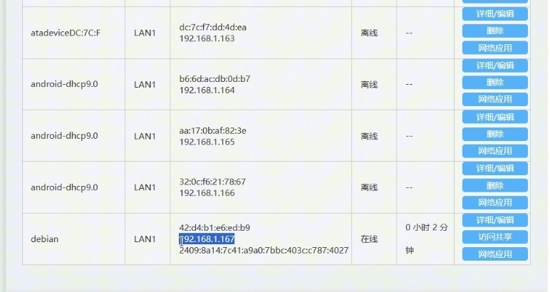 第六步:我们回到电脑,等待2分钟左右就可以到路由器后台查看一个叫debian系统IP地址了