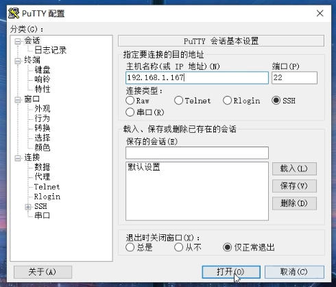 打开putty,输入ip地址,点打开
