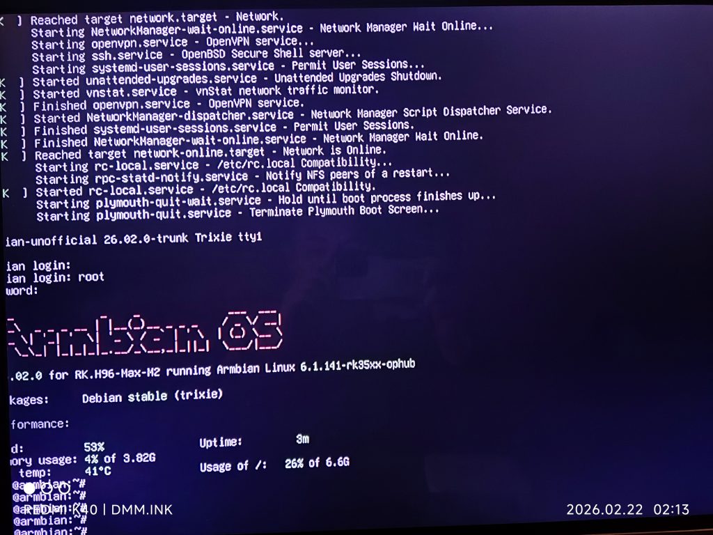 小伙伴知道刷armbian,刷飞牛NAS等等都是把系统写入U盘或者TF卡,然后启动电视盒子进入卡载系统。这款瑞芯微RK3528A的盒子我用的是TF写入的系统。事先说明,我写入卡载系统,盒子正常启动进入卡载系统以后,没有把系统写入emmc,因为我只是做试验,看看能不能启动卡载系统,能不能连通网络。